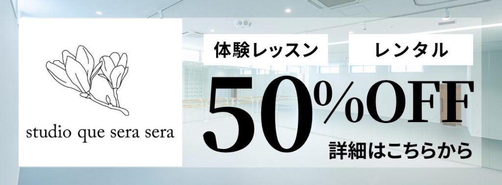 踊る・知る・バレエの時間ワークショップ受講者は、studio que sera seraの体験レッスン・スタジオレンタルが50%オフ!